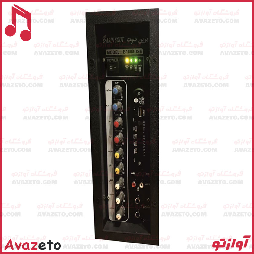 اکو همراه ۸ اینچ برین صوت مدل Barin Sout 1880 از سری محصولات برند معتبر Barin Sout محسوب میشود. 1880 برین صوت یک اکو همراه با بدنه چوبی با روکشی طرح چرمی است که به همراه باتری شارژی گزینه مناسبی برای مراسم های گوناگون میتواند باشد. این اکو همراه دارای بلندگو داخلی با سایز ۸ اینچ است که ووفر نسبتا قویتری به بلندگوهای سایز ۶ اینچ اکو همراه دارد. مجهز بودن به سیستم ضبط و پخش mp3 از طریق بلوتوث، USB و SD Card از دیگر ویژگی های این سیستم است. این اکوهمراه قابل استفاده برای برنامههای متوسط، همایشها در محیطهای روباز یا سرپوشیده یا منازل جهت سخنرانی و موزیک و مداحی میباشد و استفاده از آن به عنوان سیستم صوت فروشگاه یا سالن ورزشی و… توصیه میشود. سایر محصولات برند برین صوت در سایت آوازتو قابل مشاهده می باشد.