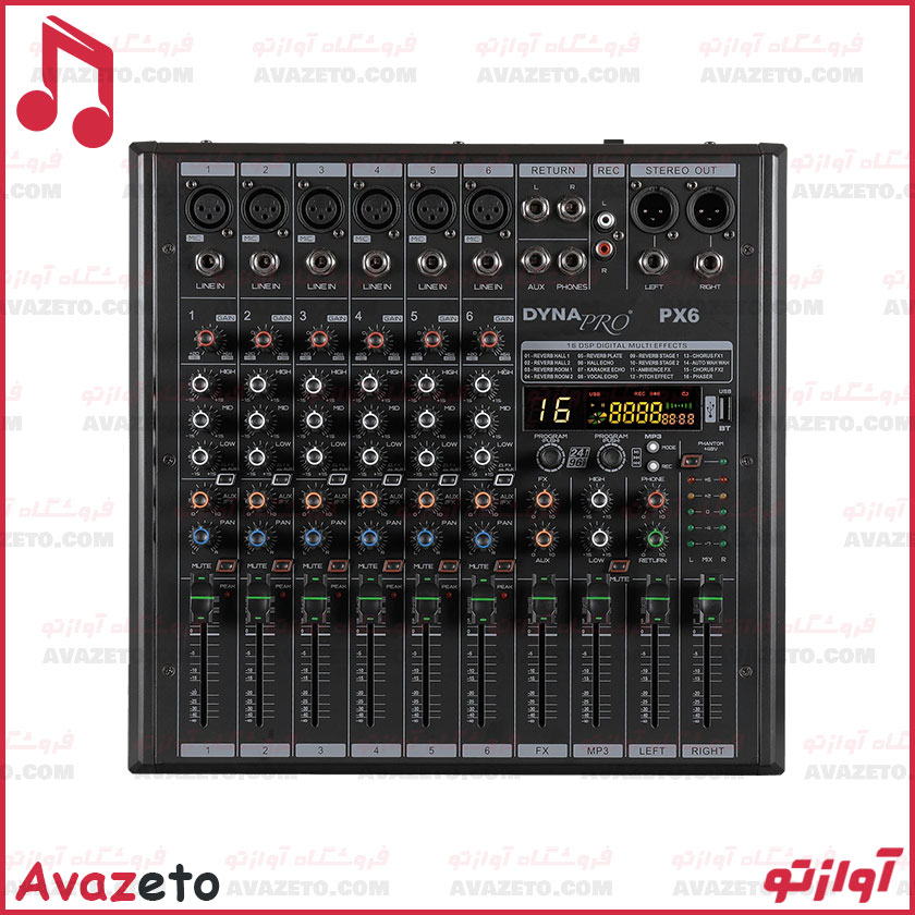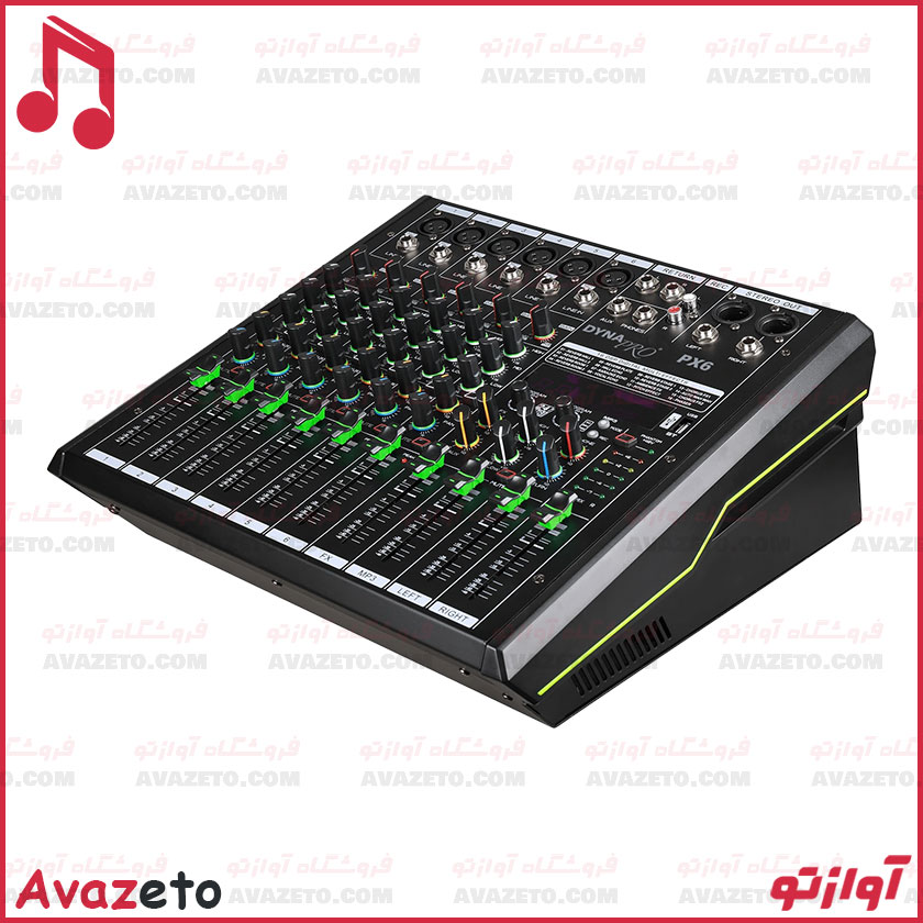 پاور میکسر دایناپرو مدل DYNAPRO PX6 ‌از سری محصولات برند معتبر DYNAPRO محسوب می‌شود. دایناپرو PX6 یک دستگاه ۶ کاناله حرفه‌ای است که با 2 خروجی 280 وات برای اجرای زنده، مراسم و سالن‌های متوسط طراحی شده است. این پاور میکسر علاوه بر ورودی‌های متعدد میکروفن، از امکاناتی مثل بلوتوث، USB، کارت صدا و ورودی AUX بهره می‌برد و به همین دلیل دسترسی و انعطاف بالایی در پخش و ضبط صدا فراهم می‌کند. وجود اکولایزر سه‌ باند برای هر کانال، افکت‌های دیجیتال، فانتوم پاور و خروجی‌های متنوع باعث شده تا شما بتوانید کنترل دقیقی بر صدای خروجی داشته باشید. در کنار این ویژگی‌ها، سیستم خنک‌کننده هوشمند نیز برای کارکرد طولانی‌مدت در نظر گرفته شده است. در مجموع PX6 گزینه‌ای کاربردی و مقرون‌به‌صرفه برای کسانی است که به دنبال ترکیب قدرت، امکانات و کیفیت در یک پاور میکسر هستند.